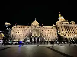 Turning to the west side, the illuminated buildings of the International Architecture Exhibition come alive. Gothic spires and Baroque reliefs reveal their vintage charm under the lights. The copper dome of the Peace Hotel is especially eye-catching, as if telling the stories of old Shanghai.