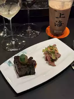 There are two main courses. Australian Wagyu beef ribs slow-cooked at low temperature—jokingly, the knife is basically useless; just a light press with the fork and it melts away.