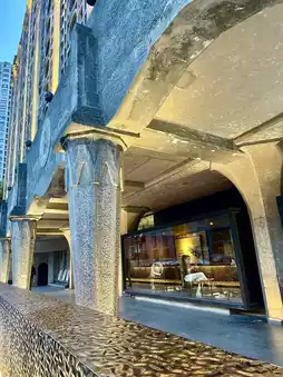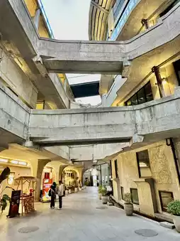 Concrete spiral staircases, art deco lines, shadowy corridors — and in the midst of it all, the warm aroma of espresso. Whether you’re sipping a latte by the window or taking a break between gallery visits, the space wraps you in a strange yet elegant stillness.