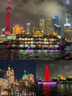 Visiting the Bund at dusk is truly "worth it"! The lights on both sides start to glow brilliantly, as if entering a dream world. Strongly recommend taking the Huangpu River cruise; the 45-minute trip lets you take in the Pudong Riverside Promenade, Lujiazui, and more. Sitting on the cruise, watching the lights on both sides twinkle like stars, the Oriental Pearl Tower shines especially brightly at night, and the Shanghai Tower looks like a sharp sword piercing the sky. This is definitely a visual feast that will make you want to take out your phone and snap photos like crazy!