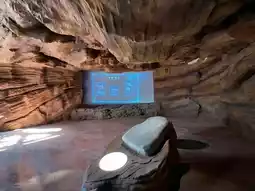 A mist covered forest under a glass roof