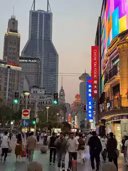 • Nanjing Road, Shanghai’s major shopping street, crowded and fun with food available all along the way