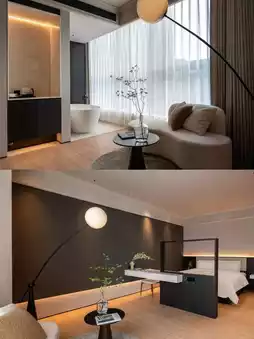 🏘️Room type/layout: Stay in a river view suite with an open living room connected to a viewing balcony. The bathtub is placed by the window, allowing you to soak while overlooking the night view of the Huangpu River. The bedroom headboard is embedded with vintage murals, and the walk-in closet’s mirrored walls extend the sense of space. Smart control systems are subtly integrated into the details, combining style and convenience.