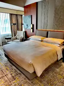 The room was spacious and clean, and the bed was especially comfortable. The window offered a panoramic view of Shanghai's cityscape, and the night view was spectacular. The hotel staff were also friendly, guiding me through check-in smoothly and welcoming me with a smile every time I asked, which gave me a sense of security.