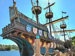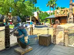 Step inside the Siren’s Revenge at Shanghai Disneyland and get ready for pirate vibes galore! The ship’s interior is packed with weathered wood, nautical gear, and secret hideouts that make you feel like you’re part of an epic sea quest. From dimly lit cabins to treasure-filled nooks, every corner tells a swashbuckling story. It’s the perfect spot for fans of pirate adventures and hidden treasures alike.