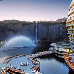 It was built right into the side of an abandoned quarry, a deep pit on the ground that reaches 88 metres below sea level. The first underground and luxury five star hotel in the world was thus constructed! Also known as the "Deep Pit Hotel" in Shanghai, it has sixteen floors underground and even has ,two floors under water !
