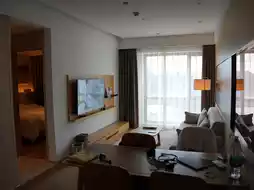 This hotel offers incredibly spacious accommodations with excellent facilities. Both the living room and bedroom are equipped with TVs, and there is also a kitchen and laundry area. Having lived in Shanghai for ten years, I find it hard to imagine such a spacious hotel in the city center.