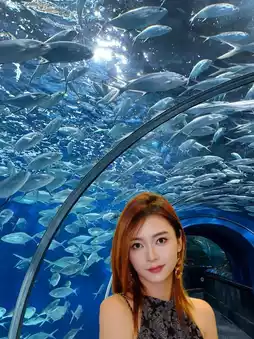 2️⃣155-meter Underwater Tunnel — Shoot silhouettes from below for full atmosphere