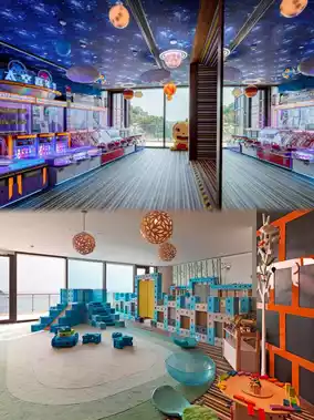 Private beach for sea hunting🌊 + indoor and outdoor pools + kids’ playground🎪, plus simulated kitchen and large building blocks!