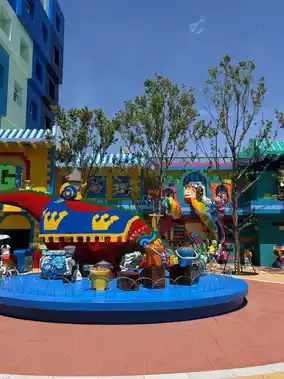 We arrived at LEGO Land early in the morning, greeted by a massive LEGO brick archway that immediately lit up the kids' eyes. The park's architecture and decorations were infused with LEGO elements everywhere—streetlights, signposts, even trash cans had a playful LEGO design. For the kids, it was like stepping into a dream city, and for the adults, it was a nostalgic journey back to childhood.