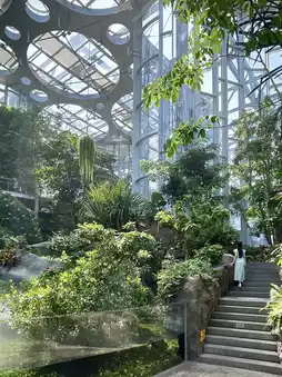 Located near the Shanghai Expo Cultural Park, the greenhouse garden is an ideal indoor travel destination, perfect for rainy or hot days. Accessible by subway or taxi, the moment you step inside, you'll feel like you're in a tropical jungle thanks to the humidity and lush greenery. With features like mini waterfalls and mist effects, it's also a great place for kids to explore. The garden is not crowded, allowing for a peaceful stroll, and the experience can be perfectly rounded off with a visit to a nearby café after a walk in the park. Highly recommended as an indoor date spot, especially on rainy days. It's a unique healing point where you can connect with nature in the heart of the city. 🌿☔️