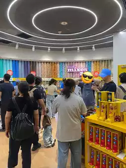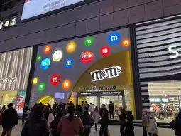 This M&M's flagship store is located on Nanjing Road Pedestrian Street, spanning two floors. As soon as you enter, you're captivated by the vibrant array of M&M's figures and merchandise, including bright slippers and T-shirts, cool mugs, and adorable M&M's dispensers.