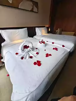 Booked a starting room (around 5,000 THB) and got upgraded to a Deluxe Ruby Balcony room with a balcony to enjoy the light and sound show in the quarry 🎇🌌