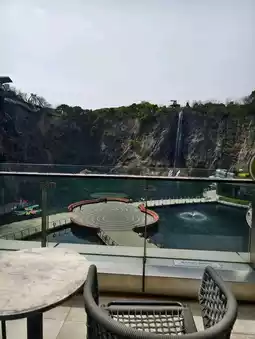 The hotel is located in the middle of an old quarry, designed to descend along the cliff. The surrounding atmosphere is very peaceful, especially on weekdays when there are fewer guests, making it very tranquil 🌿⛰️