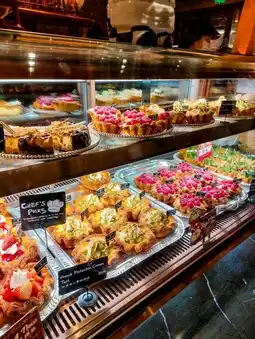 The interior is elegant and European-style, and the shop is well-managed and fast-paced. You can pick up your order outside if you order a drink.