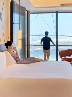 I was immediately impressed by the upscale decor! The room facilities are very new, and I especially loved the lazy sofa by the floor-to-ceiling window—staring out at the greenery of the Sports Park is so soothing. The bedding is moderately firm and soft, and the bathroom’s dry and wet separation is very thoughtful (plus a heated towel rack!).