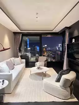The 199㎡ three-bedroom has an incredible view: the living room and master bedroom overlook the Oriental Pearl Tower and the Bund, the second bedroom faces the Suzhou Creek directly, and taking a bath at night while enjoying the night view is super romantic. [StarEyes]