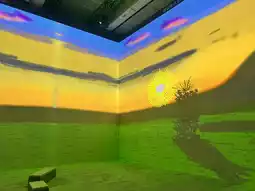 David Hockney, born in Bradford, England in 1937, is a highly influential figure in the international art world. He is an artist who uses painting as a visual laboratory. The exhibition hall, a separate screening room on Level 1 (where I watched the 55-minute video), was a welcome revelation upon entering. The 360-degree projections swirled around the room, instantly drawing me into his whimsical artistic world.