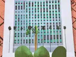 🏊♂️Swimming Pools: This is Hockney's most iconic series! The iconic blue pool, the splashing water, the California sunshine seem trapped within this body of water. Each ripple and splash of color in these massive pool paintings tells a story of summer. Standing before the paintings, one feels as if one could plunge into the cool pool and feel the embrace of the sun and splashes.