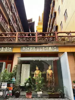 The temple itself includes golden halls, tall pagodas, and impressive Buddha statues, including a large jade Buddha and a bronze bell. Though it sits among modern skyscrapers and malls, the temple offers a quiet, peaceful place for prayer and reflection. Many visitors come to burn incense, make wishes, or enjoy the calm atmosphere and history of this nearly 1,800-year-old landmark.