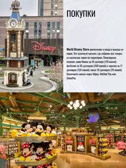 Bring food with you - save time and money. In the park: Mickey ice cream $8-12, lunch $15-25. World Disney Store at the entrance: Mickey ears $24, T-shirts $28, souvenirs $10-17.