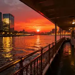 4️⃣ Second Deck of the Ferry: Capture golden water ripples + lights from both banks clashing, cinematic feel for free