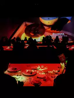 The venue features giant wrap-around screens + interactive table projections where you can "write" or "catch fish." You won’t get bored even while waiting for the next course.