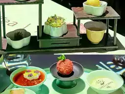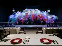 The magic comes from the seamless panoramic projections. One moment, a tranquil garden unfolds around you. The next, the Yellow River seems to crash down beside your table. Every course brings a new world, a new landscape painted on the walls and your very own plate. You can even pass the time by "painting" calligraphy or "catching" fish on the interactive surface.
