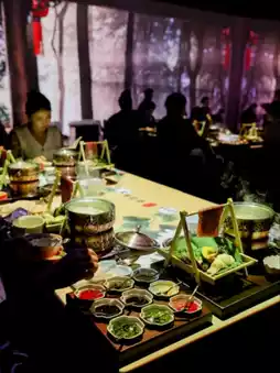 ✅ Tables & walls are ALIVE! While eating fish, the table transforms into Lijiang River! You can literally write/draw on it with your fingers - tech is UNREAL!✅ 7 dishes = whole China food tour From Jiangnan cold plates → Sichuan mapo tofu with mini lobster → galaxy rice balls so pretty I couldn't eat them! 🌌 Each dish paired with different teas (Longjing, jasmine, pu-erh) - perfect palate cleansers!