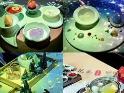 🔥 Non-stop AR Fun: Practice calligraphy or go virtual fishing on the table between courses. 🐟 Scan the menu "passport" and an AR panda pops right out! 🐼
