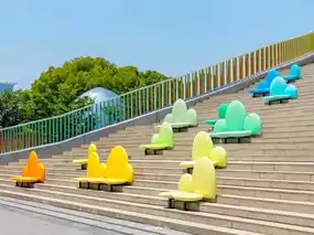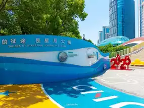 Located in the North Bund Greenland Park area near Discovery Bay, there's a vibrant rainbow bridge and cute cloud chair. It's a must-see for any photoshoot.