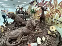 • Giant chocolate sculptures — animals like elephants, pandas, tigers and more, crafted from real chocolate by master chocolatiers.