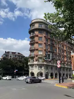 2. Wukang Mansion (武康大楼), a 1920s French-Italian architectural landmark, located at a beautiful corner intersection. It's a great place for cool photos, and is popular with photographers and fashionistas.