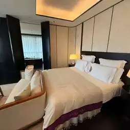 The restaurant was also great—the food at Baolixuan is truly delicious (the abalone fillet and frog meat are must-try! The fried rice and beef stew were also good, but the popular chicken was surprisingly average). The breakfast looked fancy but tasted average. There was candy in the bar on the first floor, and the lemon tea was delicious. Another nice feature is that the minibar is refilled for free (except for alcohol)!