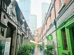 Zhang Garden Fengshengli, located on Nanjing West Road, is a cultural and commercial landmark created by preserving Shikumen buildings of varying styles. The gardens, with their Western and Chinese architectural styles, are now home to designer shops and a variety of Chinese and Western restaurants. It was raining when I visited today, creating a romantic atmosphere in the rain. Separately, across Wujiang Road from Zhang Garden, the three-story LV Cruise at Xingye Taikoo Hui on Shimen Road, adorned with the sound of waves, has attracted numerous visitors to take in the scenery.
