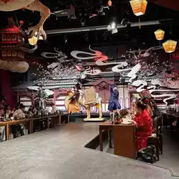 For a similar price as the Wang Hong experience, you can enjoy both the performance and the meal in one place. The viewing space is incredibly quaint, and you can enjoy the show even more by wearing Tang Dynasty costumes and makeup while eating at the theater:)