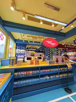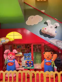 Wiggle Wiggle Shanghai opened in 2024 with a concept that ties in with its South Korean branch, telling the story of a UFO that crashed from Seoul to Shanghai. The shop has four floors, each decorated uniquely. For example, the first floor is the lobby, the second floor is a garage, the third floor is a playground, and the fourth floor is an attic and restroom. All are designed to be interesting photo spots.