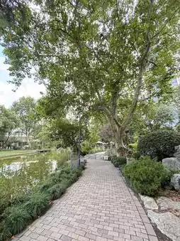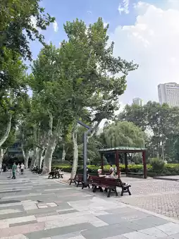 Jing'an Park is spacious and shady, with mature trees such as ginkgo and sycamore trees lining the central walkway. There are lawns and ponds with blooming lotuses in summer. There are also Chinese wooden pavilions and stone landscaping, creating a sense of tranquility and naturalness.
