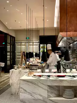 The breakfast area at Andaz Shanghai stood out with its modern and sophisticated ambiance. Thanks to its spacious and open layout, the soft morning sunlight streamed in, creating the perfect setting for a leisurely start to the day. 🌤️ The high ceilings and clean, minimalist interior design provided a refreshing and airy atmosphere, while the thoughtfully arranged lighting and furniture added a touch of simplicity and style, ensuring a comfortable experience.