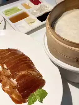 The restaurant boasts a glamorous exterior and interior design. From the window seats, you can enjoy breathtaking views of the Huangpu River and the Pudong skyline. The duck course menu is particularly notable, blending subtle Chinese spices with a modern twist to create a unique flavor profile.