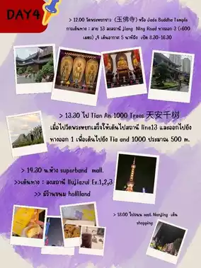 >>> The average budget per person is 25,000-30,000 baht, not including souvenirs. (Our accommodation was the Chalet Hotel, a 4-star Chinese hotel near Holiday Inn, People's Square.)