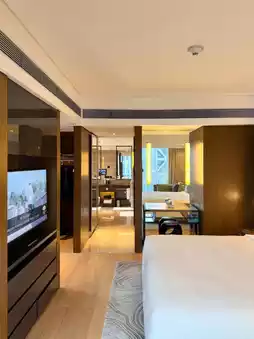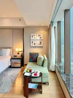 The room I stayed in was called the Mandarin River View, a corner room offering views of both the Oriental Pearl Tower and the Huangpu River. There is one such room per floor, and the view is quite stunning. The bathtub is spacious enough for two people, giving a vibe similar to staying at a riverside hotel along the Chao Phraya River in Thailand.