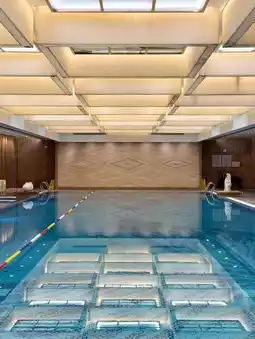 The hotel facilities are comprehensive, featuring a large swimming pool suitable for Olympic-level laps and a hot spring for a relaxing soak.