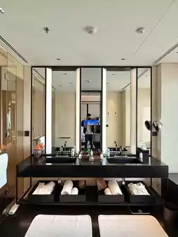 Additionally, the hotel features Michelin-starred restaurants such as โIl Ristorante - Niko Romito,โ an Italian restaurant focusing on organic ingredients and contemporary menus, and โBAO LI XUAN,โ a two-Michelin-starred Chinese restaurant serving exquisite Cantonese cuisine in a classic setting. Another highlight is the Bvlgari Rooftop Bar, offering breathtaking views of Shanghai, especially at night when the city lights up beautifully, creating a fantastic ambiance.