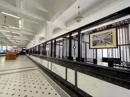 "The First Hall in the Far East": This former hall is vast and still retains its original counters and cast iron railings. Looking down, the black and white mosaic floor tiles are incredibly retro!
