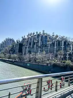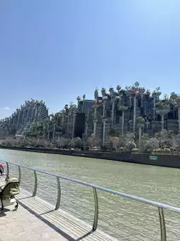 The building stands out with its green columns planted with over 1,000 real trees. 🌿