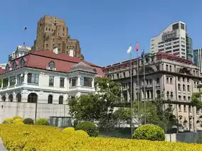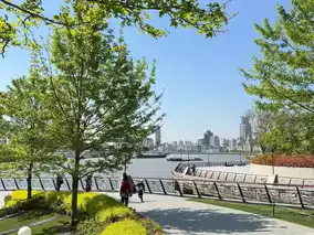 Cross the street to the opposite side to take a photo. 🥚 *The oval corner with the Oriental Pearl Tower in the background. Then, walk to the right and follow the waterfront. You'll see Manner Coffee (North Bund). Sip coffee with a view of the Oriental Pearl Tower. ☕️🌿