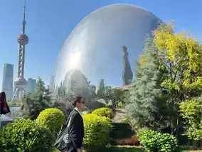 Exit the MTR and walk through the mall to find Starbucks. Look up and you'll see the Oriental Pearl Tower. 🗼
