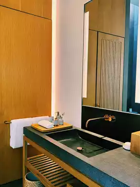 As soon as I stepped into the lobby, a subtle fragrance greeted me, and the staff's quiet yet natural hospitality confirmed, 'This is truly Aman.' The pathways leading to the rooms were lined with small ponds and gardens, making even a simple walk feel like a moment of relaxation. It felt like entering 'a self-contained world' rather than just a city hotel.