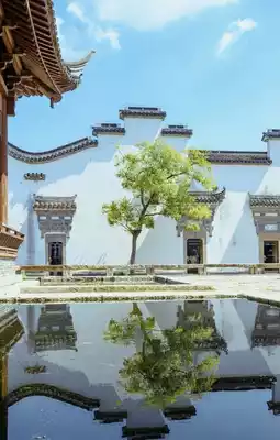 2. Jixianfang · Hui-Style Ink Painting Scroll: Hui-style white walls and black tiles built along the water, spring greenery reflects on the walls, autumn leaves cover the ground, standing by the ancient bridge to shoot reflections, you can’t tell if it’s Huizhou or Songjiang